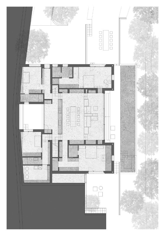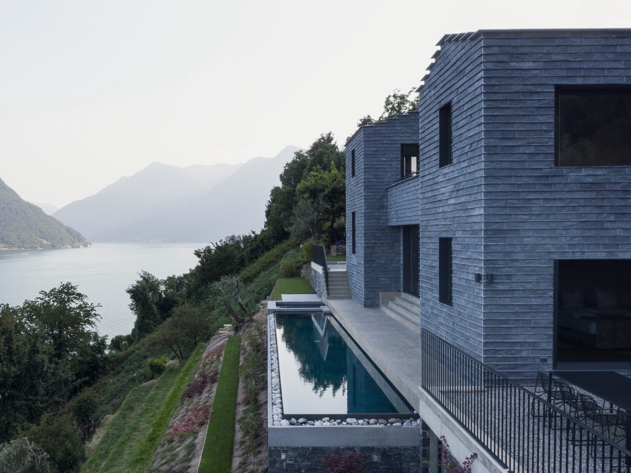 Internally, however, the tension of the spatial narrative is helped by the compression and dilation between sleeping and living areas and by the continuous contrast between light and shadow in the domestic routes. Materially, the detail of the exterior stone cladding owes much to the traditional buildings of the lake, while the roof and facade merge thanks to a modular design of the pitch.