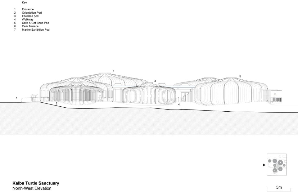 Hopkins Architects' project consists of seven interconnected pavilions reminiscent of sea urchins' exoskeletons and reminding the "capsules" of the Buhaise Geological Park, designed by the same studio, with which the "sanctuary" is conceptually and figuratively related.