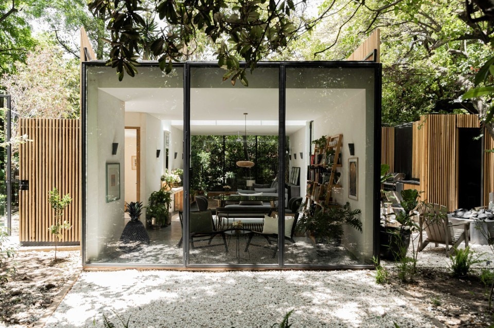 This reverential approach to nature can be seen in Casa Mague, a house designed by Mauricio Ceballos X Architects in Malinalco, where the abundant vegetation and the presence nearby of a monumental Aztec ceremonial center evoke the suggestions of an archaic and sacred place.
