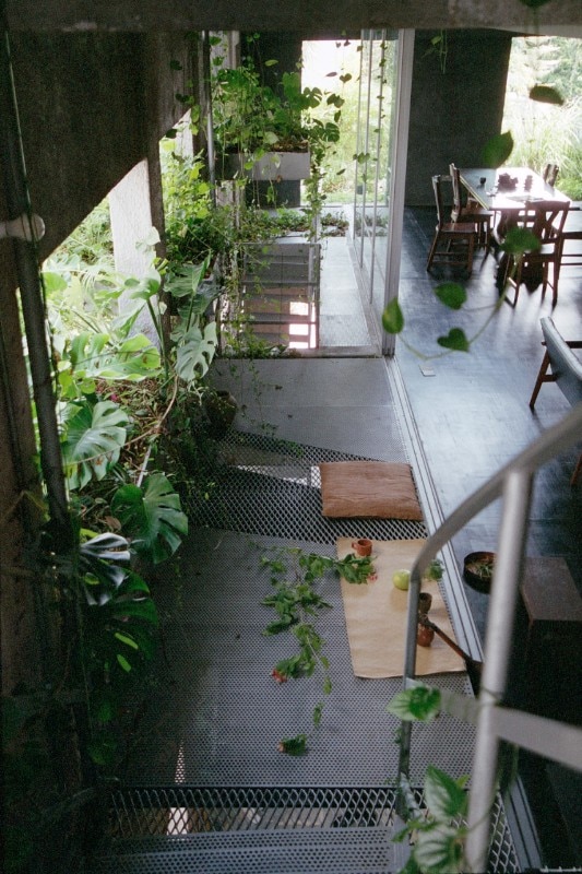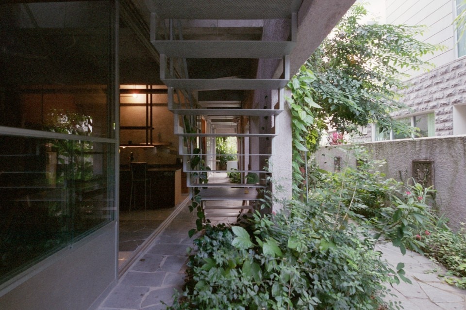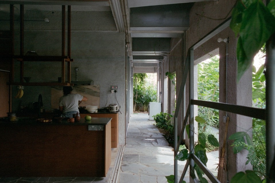 On the ground and first floors, a column of wardrobes runs along the blind wall separating the house from the property next door. On the first and second floors, perforated steel slabs have taken the place of the concrete, creating a visual permeability between floors and closer contact with the atmospheric elements. These include rainfall, whose presence in the interiors is part of the design. In particular, on the top floor – a single space dominated by a piano – a number of transparent acrylic roof tiles have replaced the original ones. Some of these are connected to small tubes that channel the water to the planters. “Rootedness,” says Hao, “is not something given. On the contrary, it is found by adapting to places and their nature.”