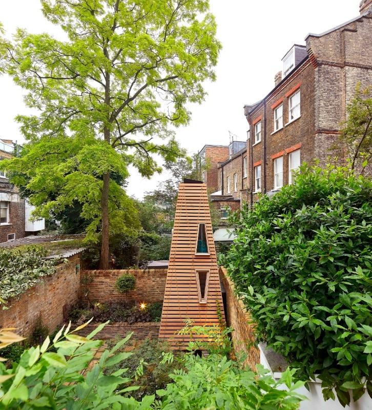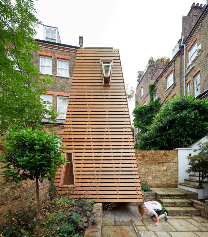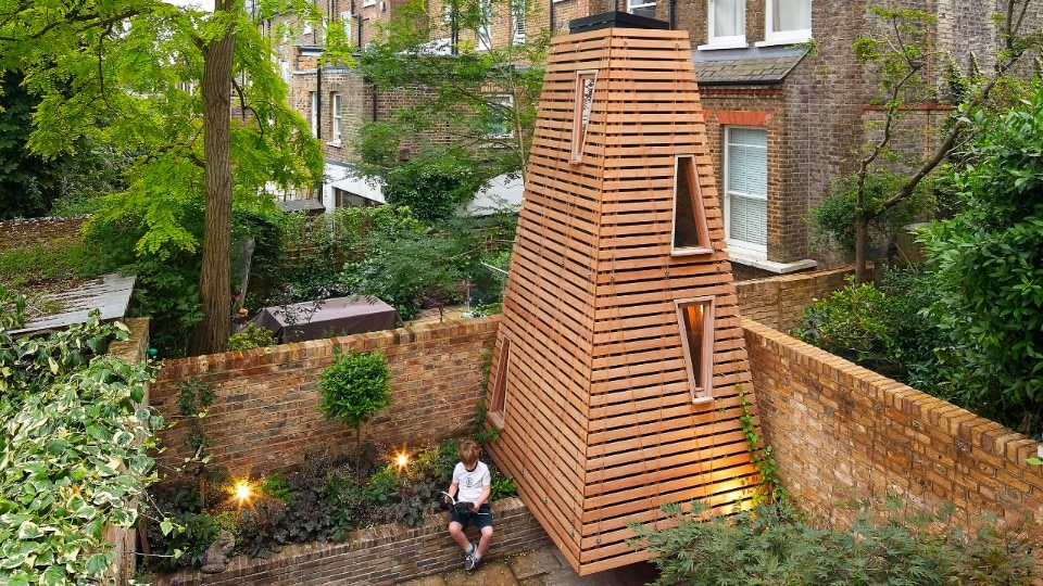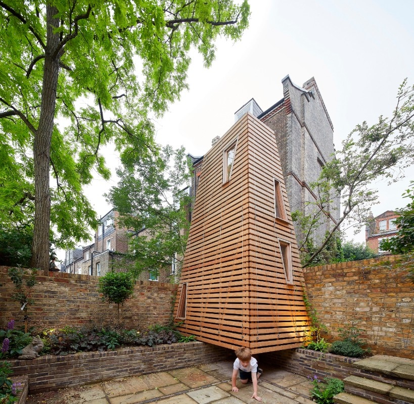 To build a playhouse in a garden, a secret haven where kids can imagine fantastic adventures unencumbered by the rules and responsibilities of adults. A bit like a tree house. But unfortunately, in this case, there is no tree, and the neighbours sadly had to cut theirs down, too. This, in a nutshell, is the uncommon request that the London-based studio De Matos Ryan – founded in 1999 by Angus Morrogh-Ryan and Jose Esteves De Matos – had to work with for a young family with children who live in the city’s north-west area.