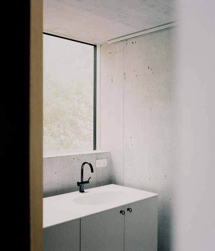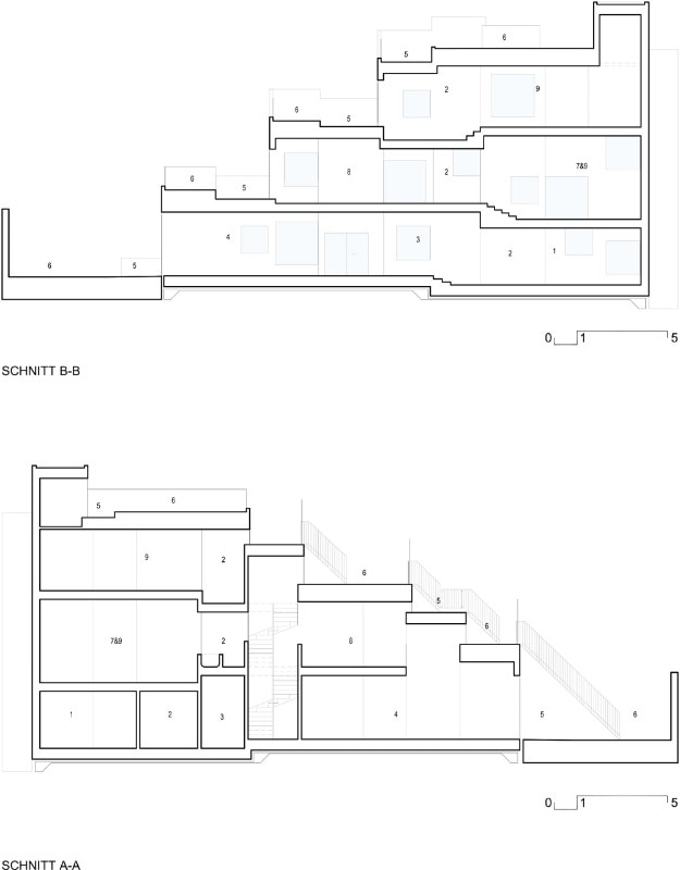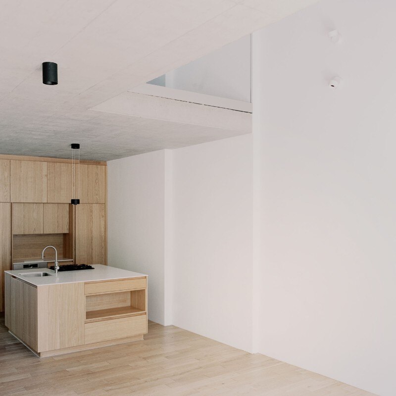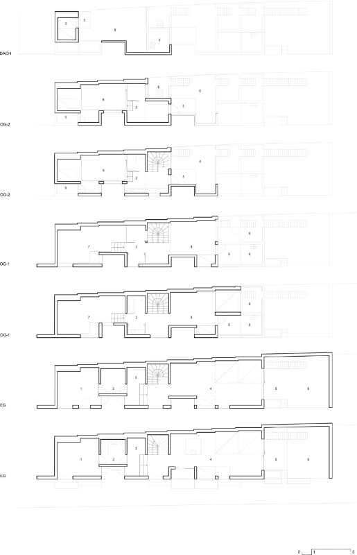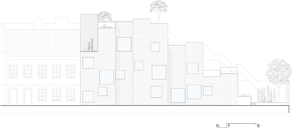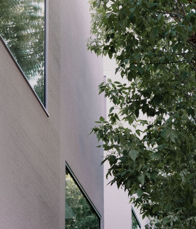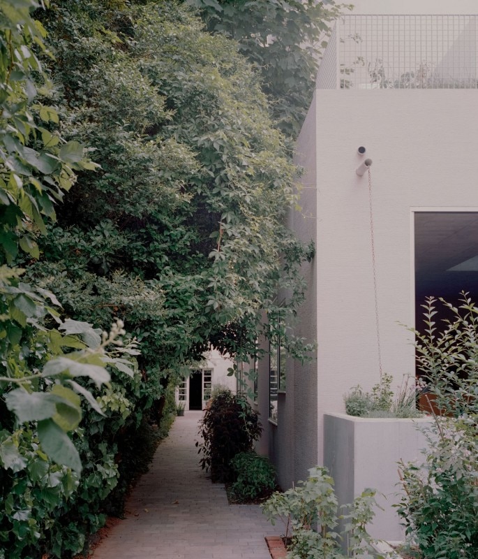 This house, literally wedged into a long, narrow plot – 7m wide and 70m deep –, among warehouses and workshops partially converted into residences in Neubau, a dense and historic neighbourhood in Vienna's 7th district, looks willing to break free from the surrounding built fabric, peeping out among the buildings in search of sky and greenery.