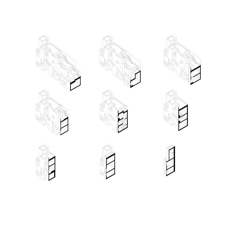 If the exterior is shaped according to the existing planimetric constraints, it is inside that the design finds its highest degree of articulation: staggered floor levels and differentiated room heights – varying from 2.10 to 6.08 m – generate interlocking games of planes and volumes, resulting in a dynamic and flexible space that winks at Adolf Loos’s Raumplan and favours a lively and irregular pattern of openings in the façade.