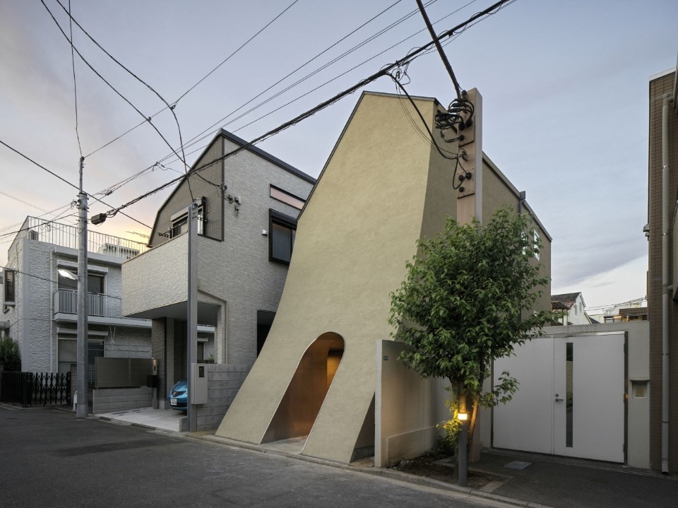 This home for an emerging manga artist stands out like a vaguely dreamlike sculpture in a Tokyo residential distric, as if to represent with its unusual silhouette a free and irreverent kunstwollen to conventions.