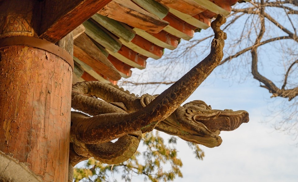 More than a temple, the complex - consisting of a hundred or so buildings - is a model of the perfect fusion of ancestral architecture and natural landscape. Among the many 'wonders' it contains, there are the eight columns of the Hall of the Holy Mother, around which wood-carved dragons twine, dating back to 1087 A.D. and the first examples in China.
