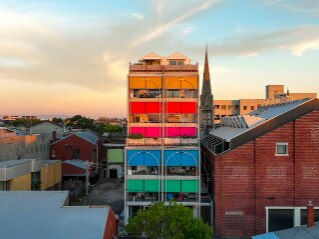 The residential complex for 50 apartments, similar to a fortress emerging from the rocky cliffs, is inspired by the Mediterranean tradition of the Arab casbah of which it reinterprets, in a deconstructivist key, the complex system of intertwining public and private spaces, volumetric intersections and labyrinthine paths between stairs, platforms and bridges. The bright colors, in various shades of red for the facades and blue for the stairs and distribution paths, accentuate the marked contrast with the landscape.