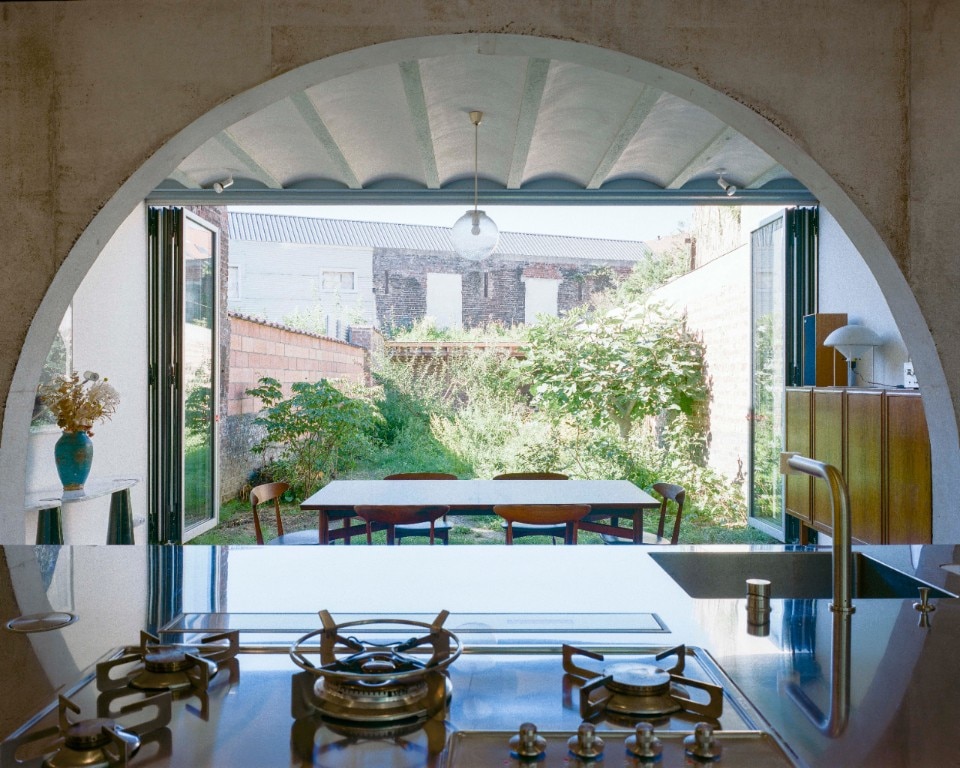 In Schaerbeek, one of the municipalities in the Brussels Capital Region, a warehouse has been demolished to make way for a house whose materials come in part from the very pre-existing structure, preserved and reused: bricks, metal frames, and flooring have been valorized, giving shape to a contemporary, clean and fluid architecture.