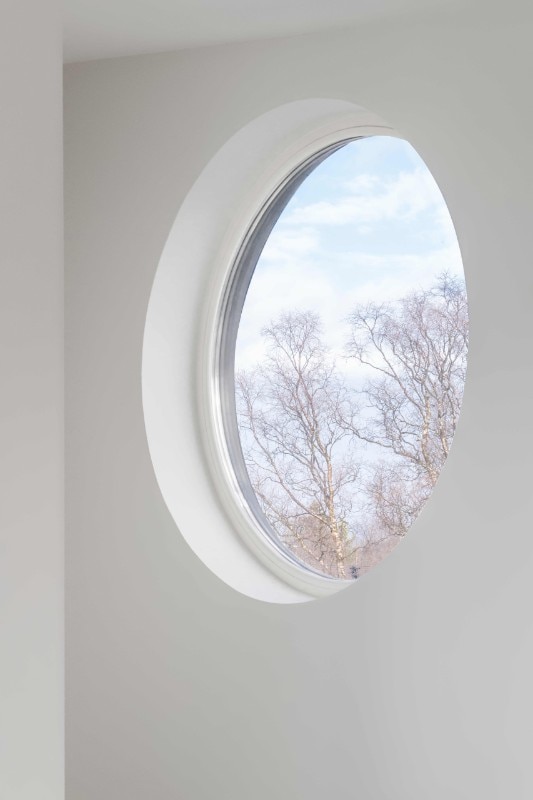 Facades are dark and dynamic, balancing order and compositional freedom, a harmonic rhythm expressed through vertical and horizontal openings, with the counterpoint of a circular opening from which natural light floods into the stairwell and entrance. The house, distributed on three levels, hosts a flat on the upper floors, while on the ground floor a small independent flat has been designed. The entrance is set back from the facade, protecting the door and adding movement to the building.