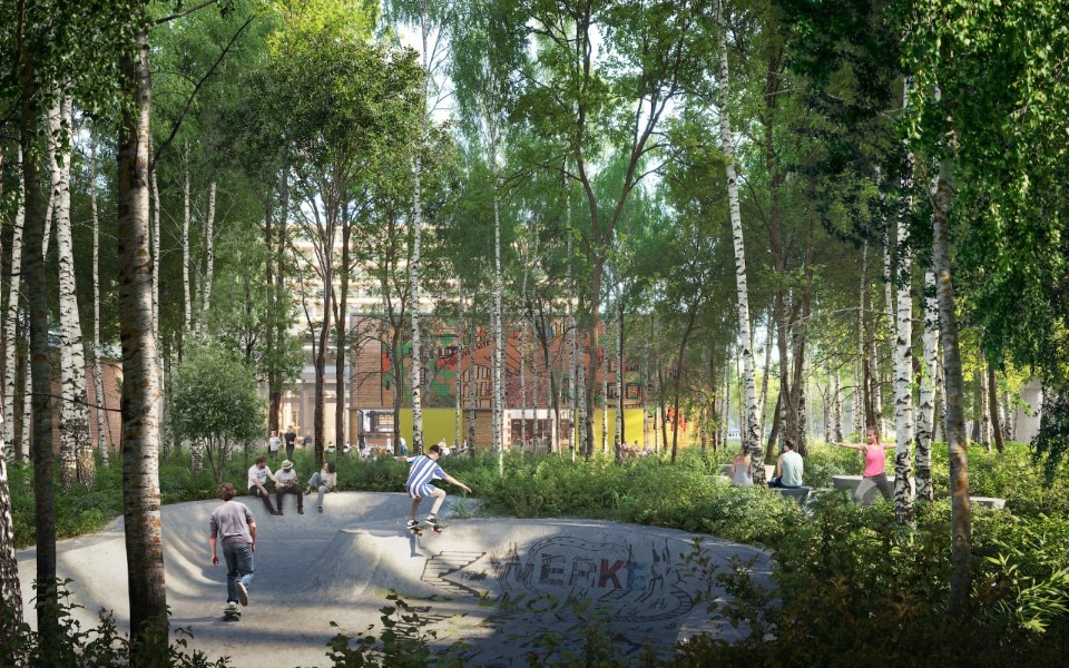 A former business park next to the train station in the Dutch city of Zwolle will become a new district dedicated to innovation, thanks to plans assigned by area developer Am and developed by a design team including MVRDV, Orange Architects and LOLA Landscape Architects. The project includes the construction of about 850 dwellings, about 30 percent of which will be social housing, and integrating educational institutions, workspaces for creative industries, catering, and a range of neighborhood facilities.
