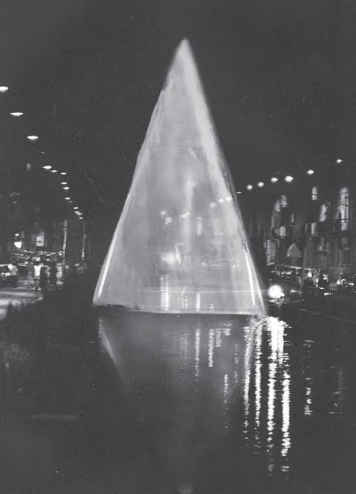 For him, those were merely “opportunities to bring aesthetic projects to life on an unimaginable scale, experimenting with unconventional materials. The sets became aesthetic-kinetic experiences, in line with the artistic explorations of the 1970s”. To highlight just one instance, consider the iconic “Piramide Telematica” (Telematic Pyramid) created for the Milan congress in 1989 (bearing in mind the post-modern era in architecture and the unveiling of the Louvre pyramid a year prior). Beyond enhancing the visual presence of speakers on the podium, it had the groundbreaking ability to link with domestic television networks, thereby, for the first time, bringing live broadcasts into the homes of Italians.