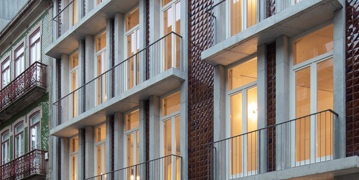 Nestled at the heart of the Portuguese city, in its dense historical fabric, a residential complex puts an ethereal and essential interior in dialogue with the materials, colors and typological elements of the context.