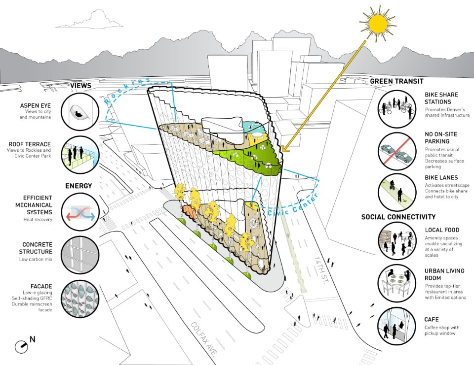 A passionate homage to Colorado’s endemic ecosystems is the distinctive feature of the composition, legible in the iconic façades.