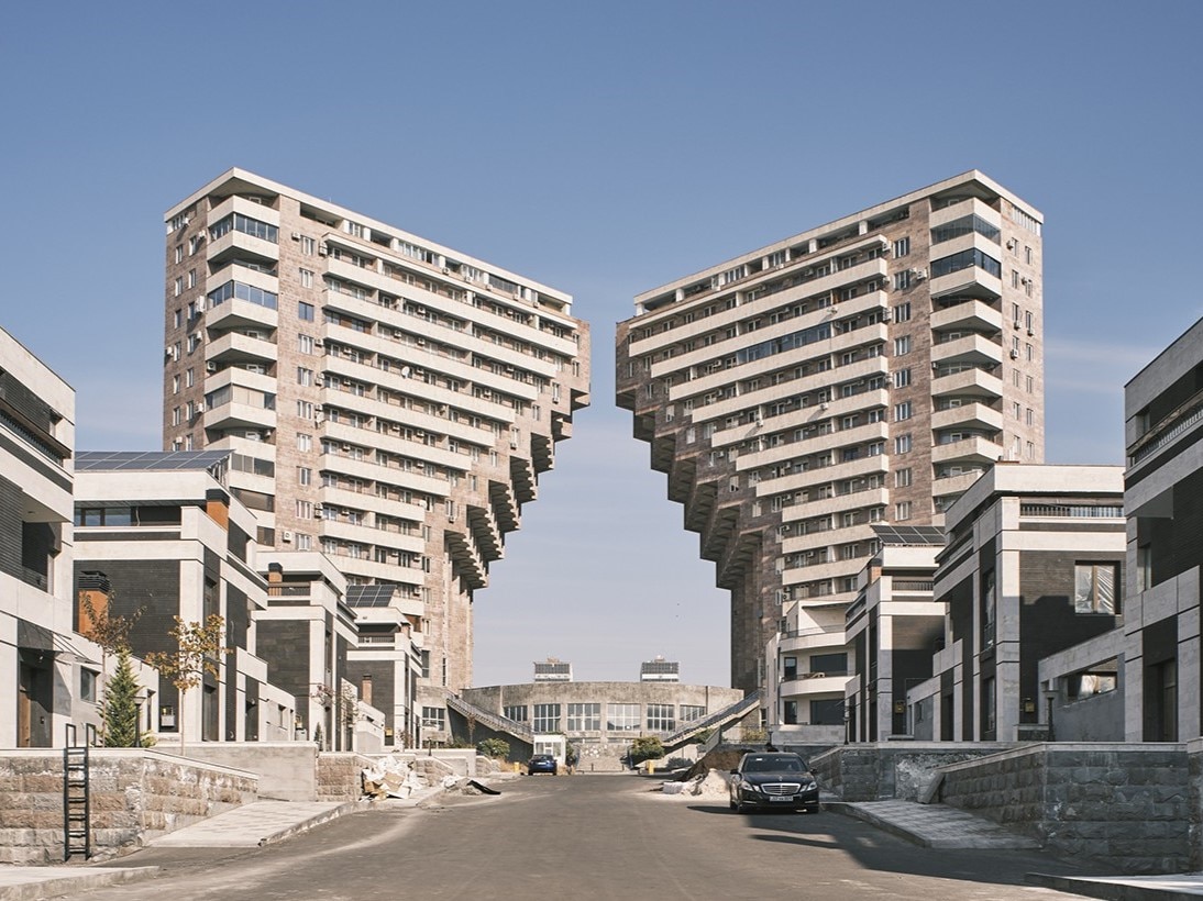 In this landscape of colors and textures, it is not surprising that the more functional urban elements maintain the same character of plasticity, so that an architectural barrier of streer separation moves like a wave along Proshyan Street, and the two discs of the cableway on Koryun Street echo in the cylinder of the adjacent spiral staircase, in stark contrast to the essential orthogonal lines of the two pillars and one beam that make up the descent portal to the lower level. In a markedly European urban layout, the buildings are finally conceived as true landmarks, testimonies of the contradiction and its elaboration and acceptance, of the affirmation of an identity, which in its desire for autonomy inevitably comes to terms with the complexity of the signs left by more than 50 years of regime, but which, nevertheless, had the courage to make them its own, assimilating them into authentic and original forms. So powerful that even the most recent architecture struggles to tale a distance from them, at times risking to get lost in the easy and anachronistic citationism.