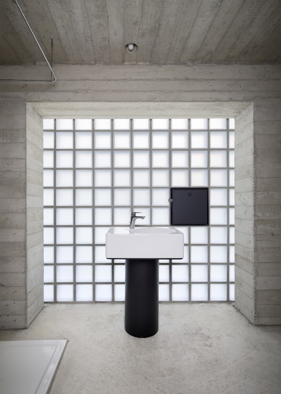 In the other bay, the peculiar space of a bathroom is made very luminous by the bold gesture of a glass brick wall; alongside traditional forms, the abstraction of the translucent wall showcases a new way of combining contemporary languages with vernacular elements.