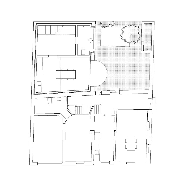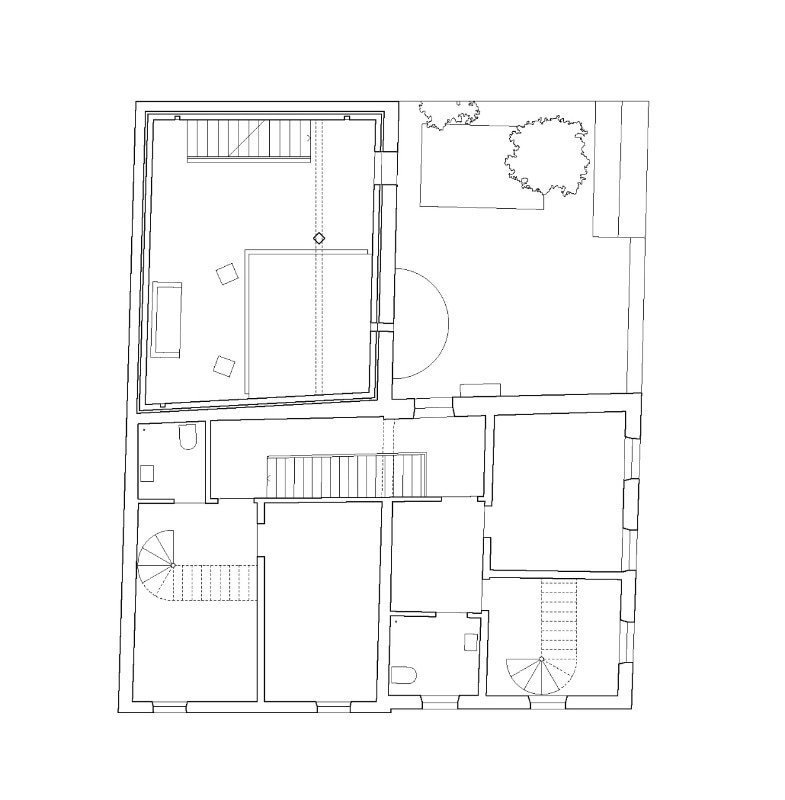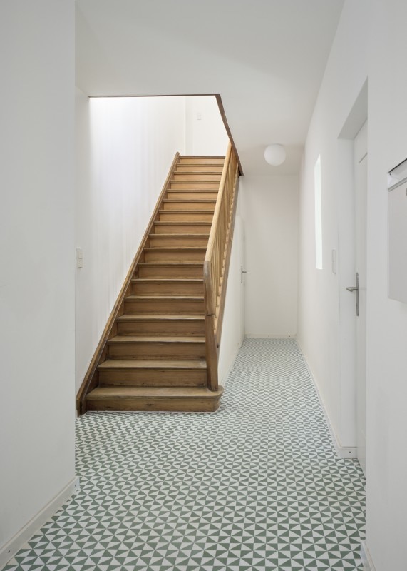 The former barn adjoins another volume which, following renovation, now houses three apartments totaling 180 square meters. Similarly to the barn, the restoration of the historic staircase enables a dialogue between past and present that takes on new meaning in the contemporary city.