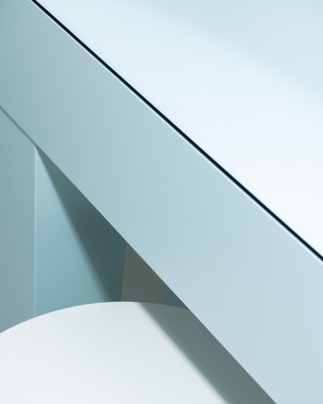 Completing the interior is a small collection of “material solitaires” – the kitchen, the dining table, and a few consoles – that seem to detach from the floor or ceiling, reinforcing the sense of a space-defining suspension and overall lightness.