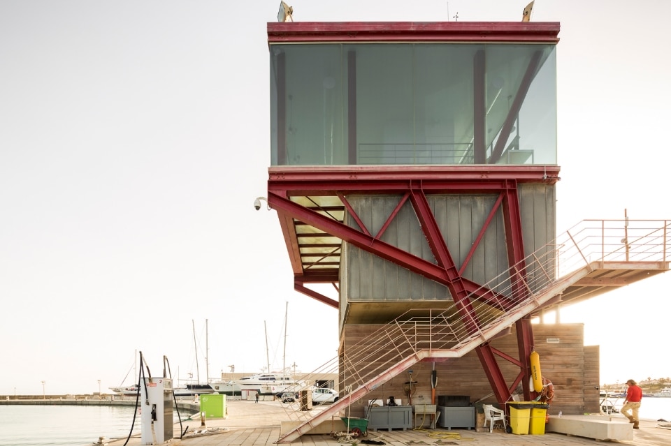 Designing in the port is also an opportunity for experimentation with language with respect to the relationship between architecture and infrastructure. Very different examples of this are Aldo Loris Rossi's Port House in Naples, conceived in the 1960s, where infrastructural utopia is embodied in a radical verticality; but also Zaha Hadid's Maritime Station in Salerno, where the architectural design panders to and optimizes the simultaneous flows of passengers, goods and vehicles in a fluid and performative key. Other examples sit on a threshold between landmark and infrastructure. In Marina di Ragusa, the control tower designed by Maria Giuseppina Grasso Cannizzo transforms a technical function into a symbolic sign, visible from land and sea.