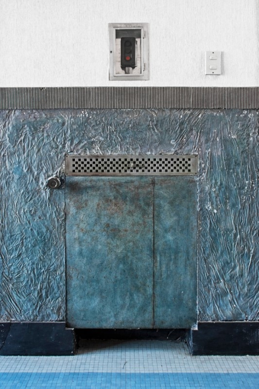 A special feature of the work is the upper body's possibility of complete rotation (360°) in two directions around its own axis (corresponding to the central cylindrical block) in a time of 9 hours and 20 minutes at a speed of 4 mm/second: the rotation is given by an electrically activated mechanism consisting of a system of trolleys with railway wheels on a ring of steel rails resting on the floor slab of the building's circular base. An innovative engineering solution, implying both an intimate belief in scientific-technical progress and a yearning for a deeper (and cathartic?) connection with Nature, at a time when the country was “moving” inexorably into the war.