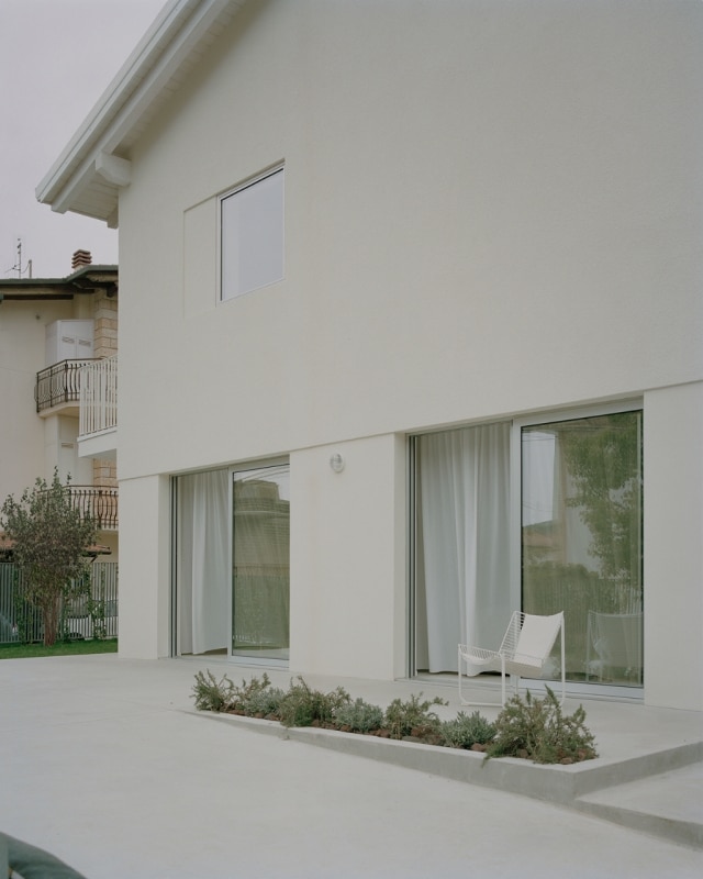 From the outside, the façade treatment features different plaster textures, enriched with small recesses that, like a drawing, define the new volume. Inside, the floor plan has been redesigned to allow greater fluidity of spaces and enhanced natural light.