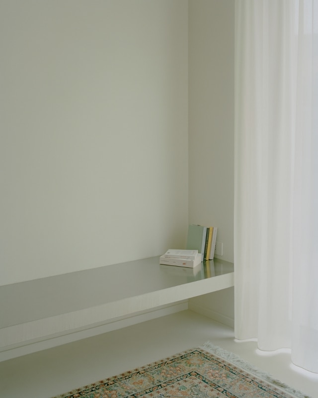 In fact, the oak furniture contrasts with the rest of the house. The white microcement floor gives brightness to the rooms and, together with the lights, curtains and furnishings, contributes to a domestic and cozy atmosphere.