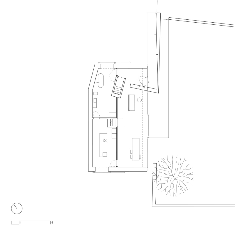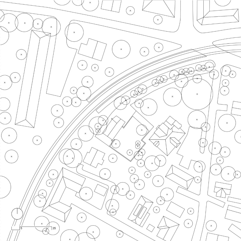 The site preserves the memory of a large private garden that once belonged to a bourgeois mansion, part of which is now occupied by the new house, flanked by tall trees and a pedestrian access path. On one side lies the railroad; on the other, a wall encloses an autonomous, self-contained garden, accessible only through the intimacy of the dwelling. The house thus acts as a threshold, mediating between infrastructure and nature, public space and private space.
