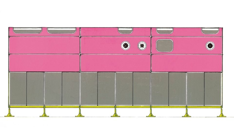 The building pulls services to the exterior to alleviate space inside. Set against the signature bright colours that seem to be hereditary to the Rogers family, these drawings best encapsulate the architect’s modern-day definition of humanism – where the ultimate spatial altruism is the ability to accommodate progress and anticipate change.