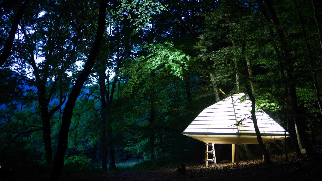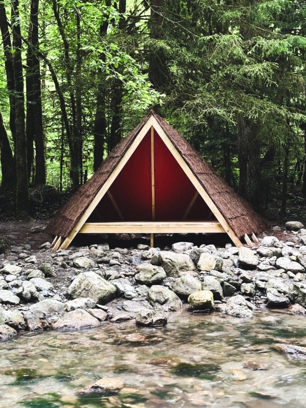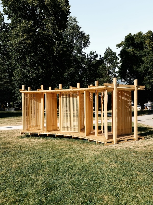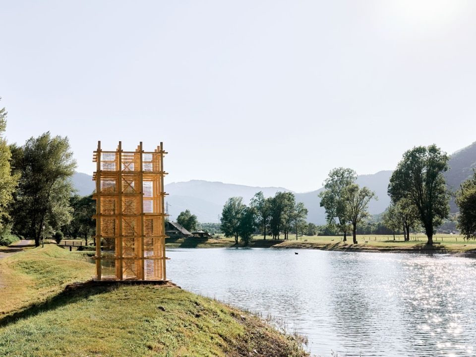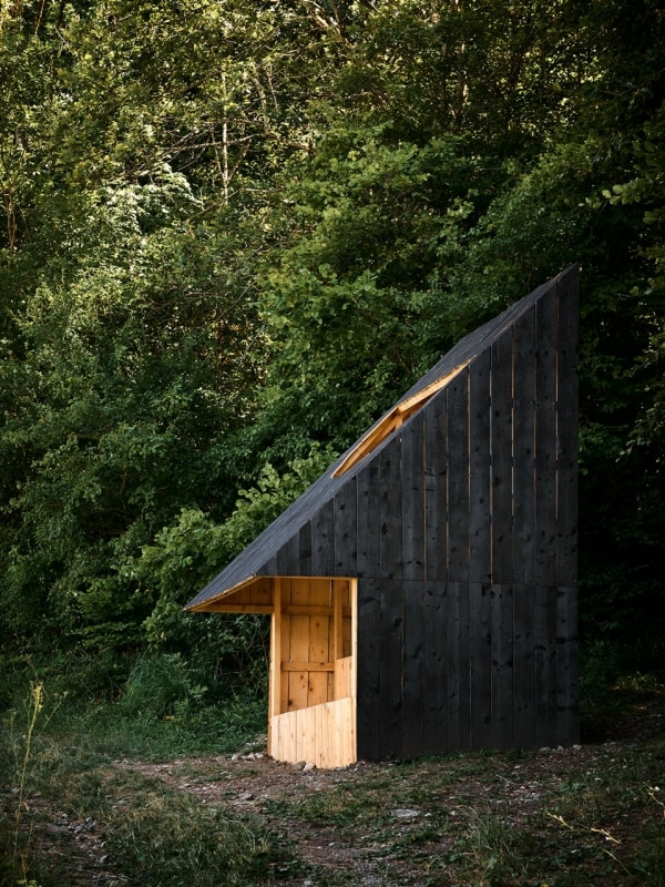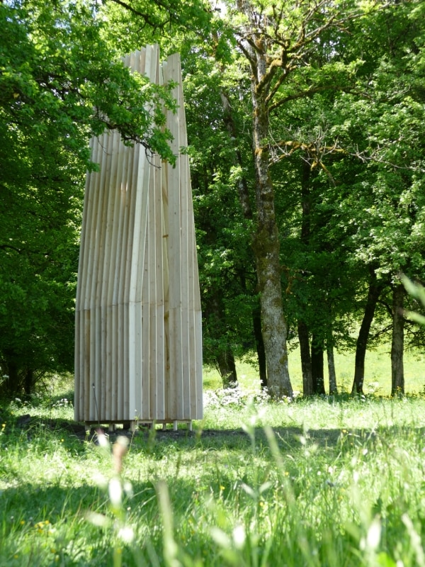 This year, thirteen huts are spread along a 20-kilometer route between the municipalities of Lathuile and Faverges. What unites them all is a symbiotic relationship with their surroundings: among them, “Le Carrières”, a cube set on a hillside blending into rock and vegetation, and, at the other end of the spectrum, the “Meditation Cabin”, which stands out for its lightness.