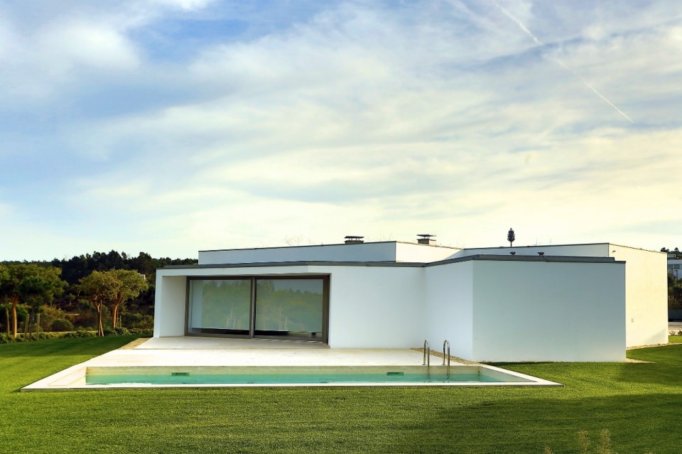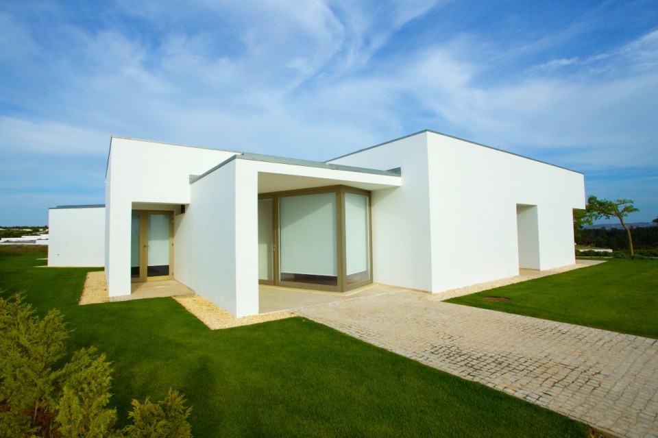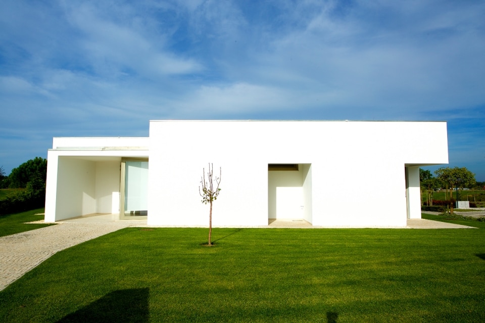 The building, with a surface area of 220 square metres, spread over a single level and surrounded by a large private garden, has the typical characteristics of the Portuguese master's expressive language: a simple and clear layout and essential, immaculate volumes, broken up by large windows and marked projections and recesses declaring the functional areas to the outside and creating dramatic chiaroscuro plays.