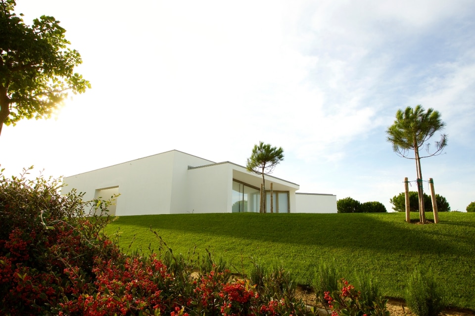 Departing from the widespread model of the tourist village with vernacular allusions, the resort is home to works by internationally renowned architects (from David Chipperfield to Gonçalo Byrne, from Manuel Aires Mateus, to Eduardo Souto Moura and Álvaro Siza Vieira), who were asked to propose their idea of a holiday “buen retiro”: villas designed according to the different architects' own vocabulary, but which nevertheless follow the common thread of a respectful interaction with the context, thanks to single-storey volumes with green roofs and the extensive use of natural materials.