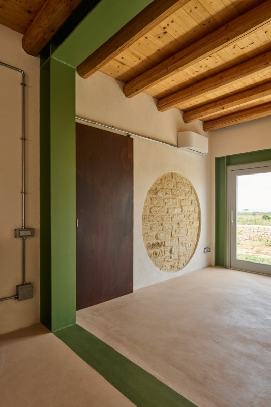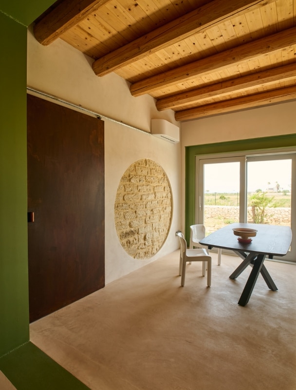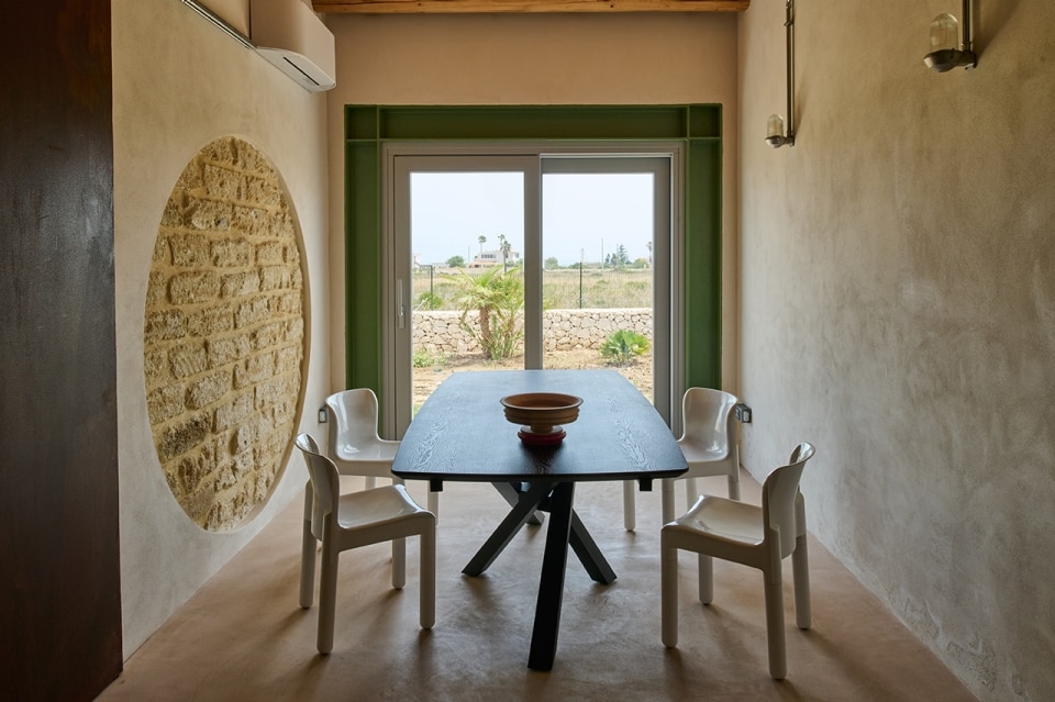 The use of simple, authentic materials—such as local cocciopesto, natural stone, and iron—anchors the project in its local roots and reflects a conscious integration of the building with the landscape memory of the Plemmirio Reserve.