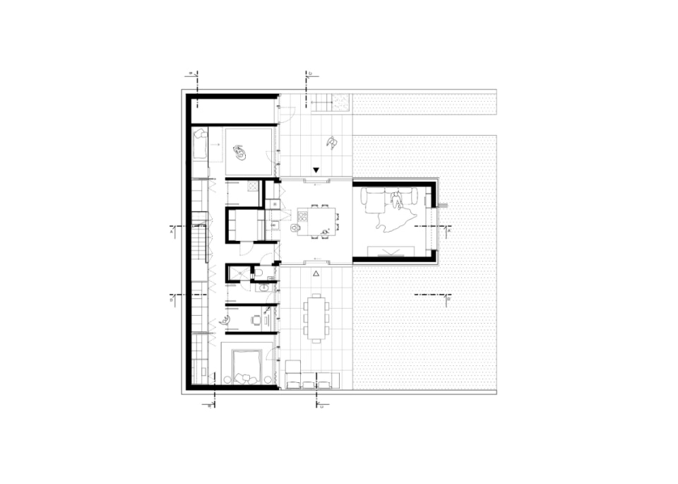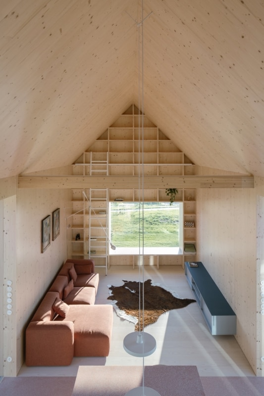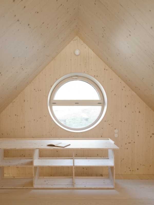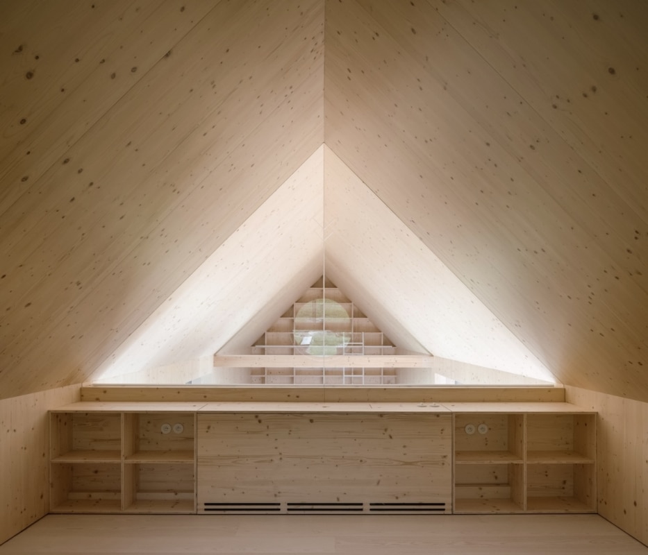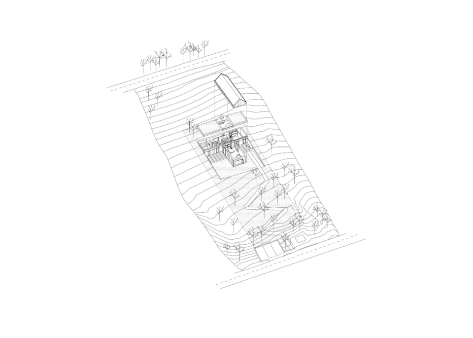 In a single project, born of the very contours of the site, the studio has not only combined a striking multiplicity of contemporary themes – apparently independent – but also reinterpreted motifs from architectural history through a distinctly current lens. Two orthogonal volumes define the house: one, containing the bedrooms, is an underground architecture of the kind that, since Wright, has lent modernism its organic dimension; the other, hosting the living areas, is a materialization of the archetypal hut. And yet it also functions like those telescope-like solids with which Herzog & de Meuron have marked recent decades, inhabited within by the luminous, symmetrical rigor of certain 1990s high-tech interiors and the monomaterial pale woods of today’s domestic language.