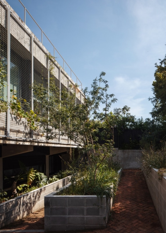 One decision was fundamental: overturning the original functional logic. The lower floor, once used as a garage, has been cleared of partitions and transformed into the new heart of domestic life. Whereas in the 1950s design access to the home was via an external staircase leading directly to the first floor, FROM introduces a descending ramp that leads from street level to the new living area on the lower floor, passing through a garden of spontaneous vegetation.