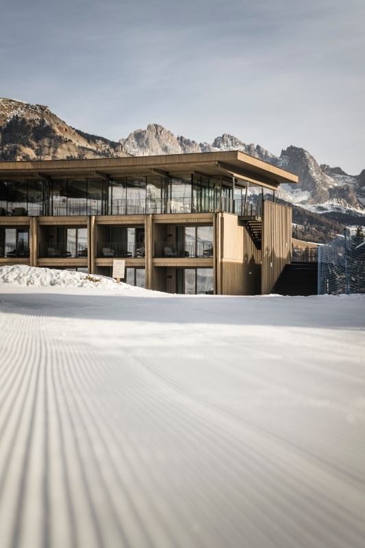In a high-mountain context such as that of Val Gardena, an architect can adopt only one attitude: a deep humility in front of the magnificence of the Dolomites.