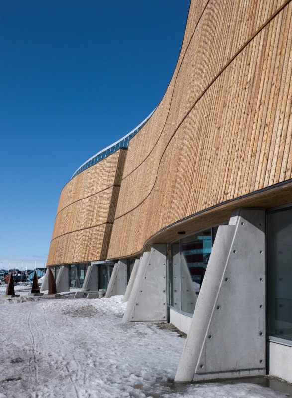 Beyond the political tensions, the island is known for “postcard” landscapes, fjords, and the northern lights. Traditional buildings are recognizable by their sloped roofs and walls clad in brightly colored wooden panels, but in recent decades, building in Greenland has become a real architectural challenge.