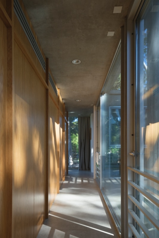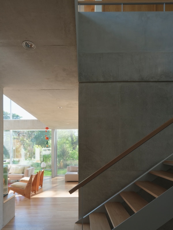 North of Buenos Aires, in the Martínez neighbourhood, a stone's throw from the Río de la Plata, Casa Eucalipto is part of a residential complex where the landscape, designed in the early 20th century by landscape architect Carlos Thays, becomes a legacy with which the contemporary project is called upon to dialogue. Part of this landscape is the historic white eucalyptus tree around which the rigorous composition is arranged, echoing Richard Neutra and Walter Gropius. The large windows alternating with a concrete shell, the horizontality of the two-storey house composed of essential volumes with flat roofs: everything tells of Modernism. In this context, the central patio that houses the tree softens the “inflexible” modernist lexicon, to let the ever-changing flow of vegetation in.