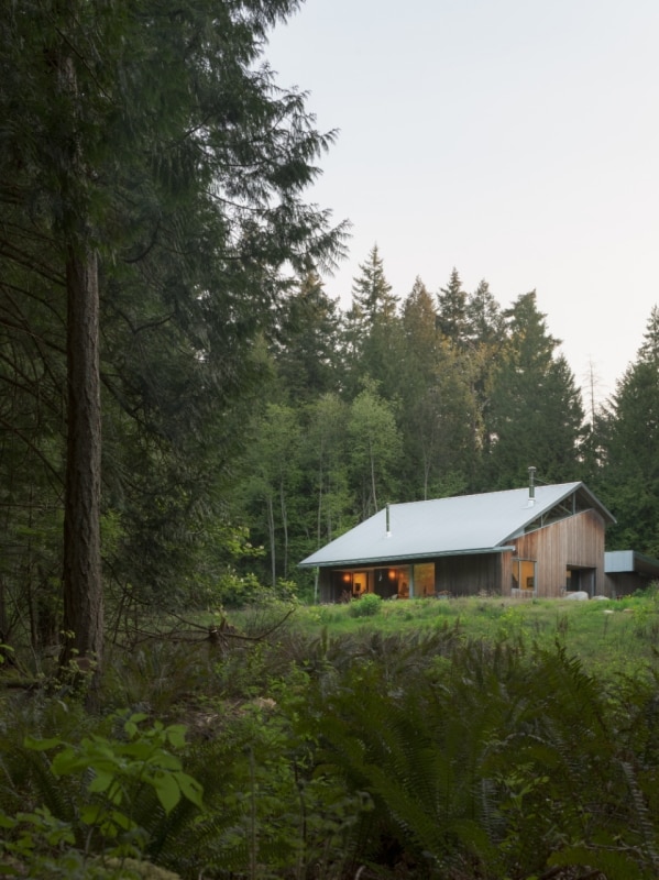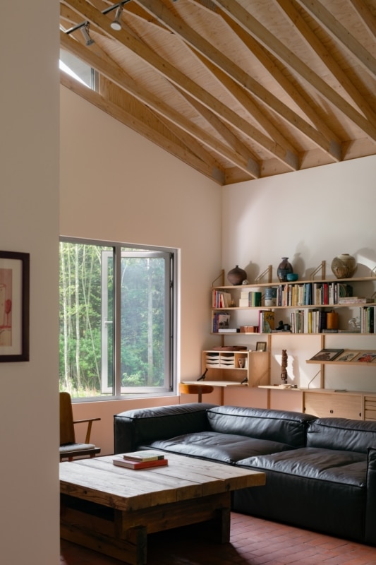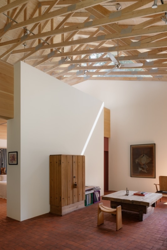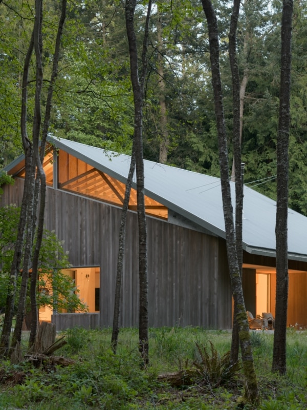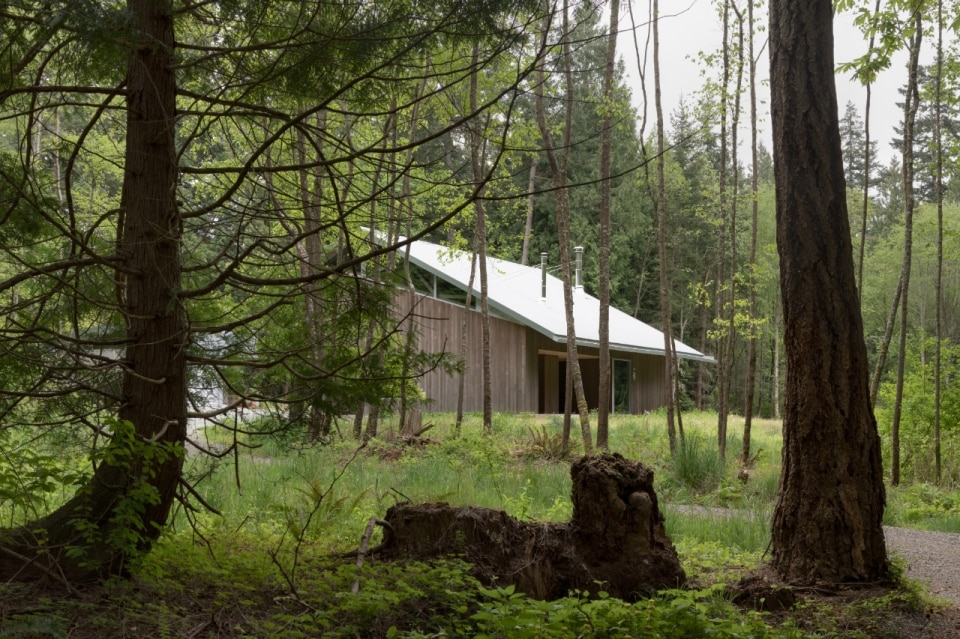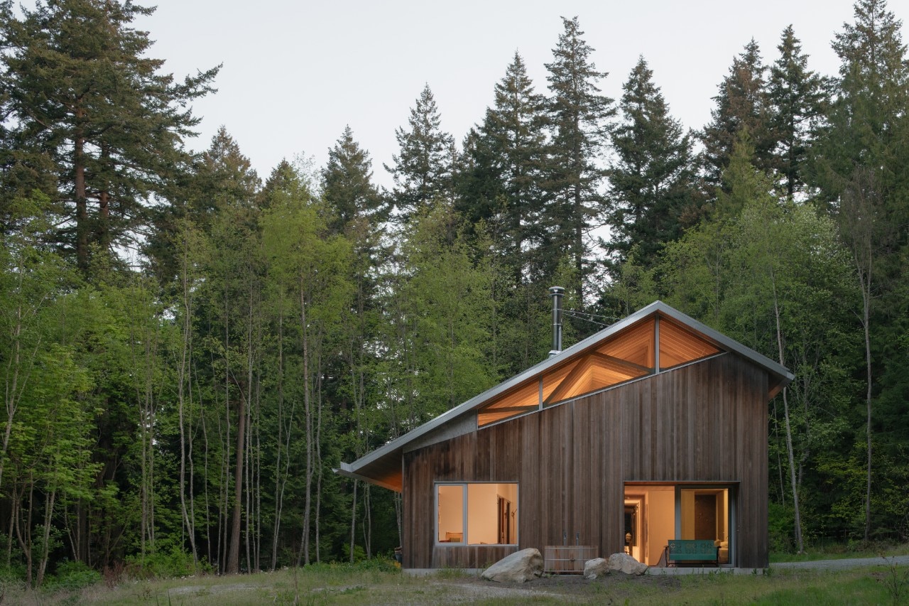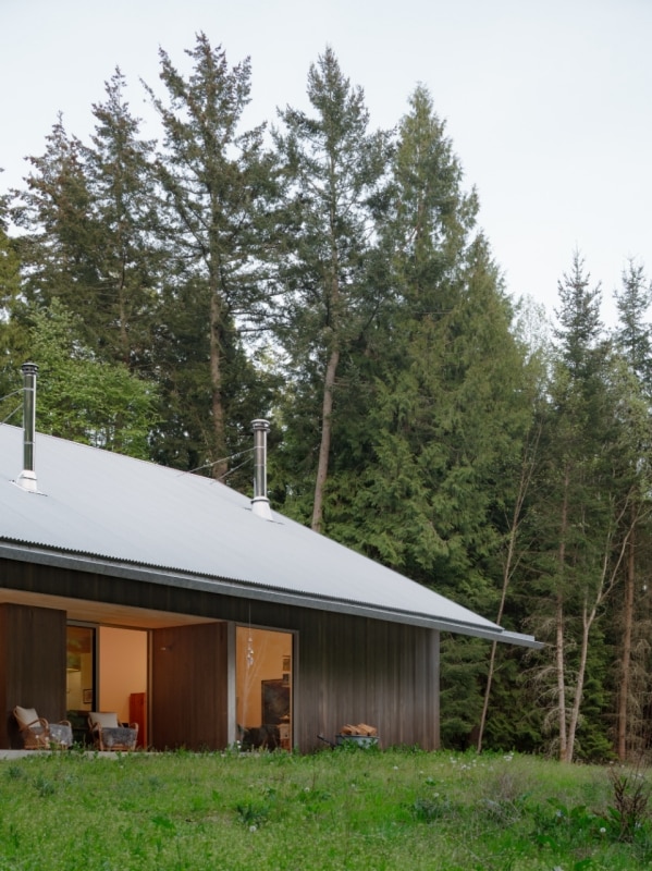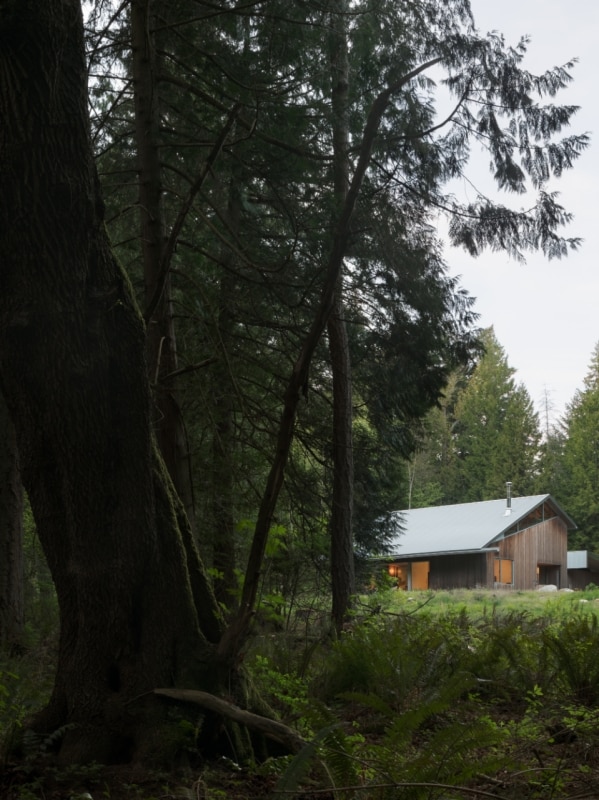 Point Roberts is a U.S. exclave located in Washington State that cannot be reached by land without passing through Canada. Scott and Scott have designed a retreat-like home here, set within a clearing and intended for short stays in an area that has largely become a holiday destination. The project centres on the extensive and thoughtful use of wood. Exposed structural beams form a dense truss system that is visible across both levels. The ground floor is dedicated to the living area, with a mezzanine level above. The exterior surfaces are clad in Alaska yellow cedar, which is designed to weather and evolve over time. Inside, fir and oak are used for furnishings and functions — from the kitchen to the stair core and custom pieces crafted using traditional techniques. Wood interacts with stone, metal, white plaster and terracotta flooring, yet it remains the dominant element, unifying the spaces and creating a strong sense of material continuity.