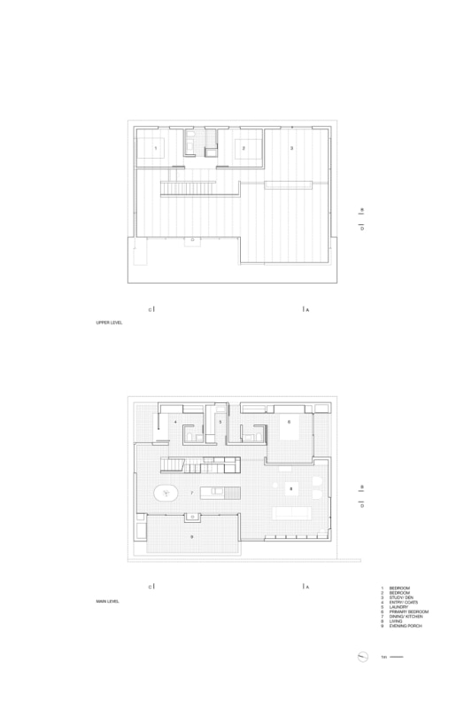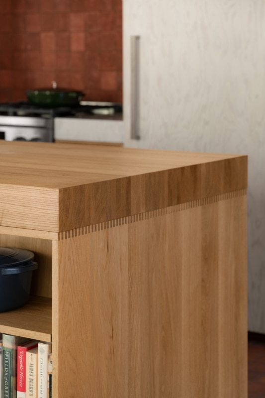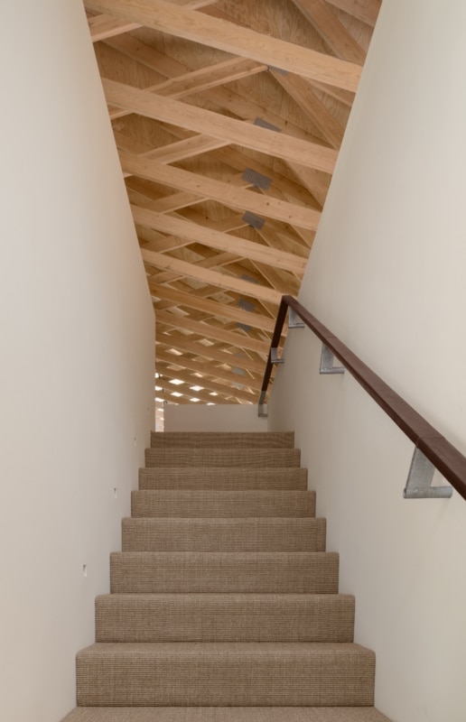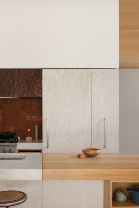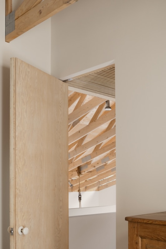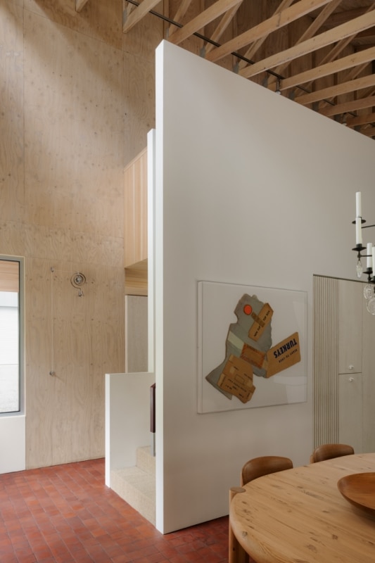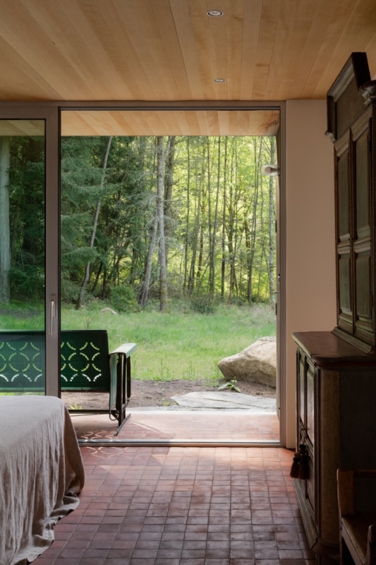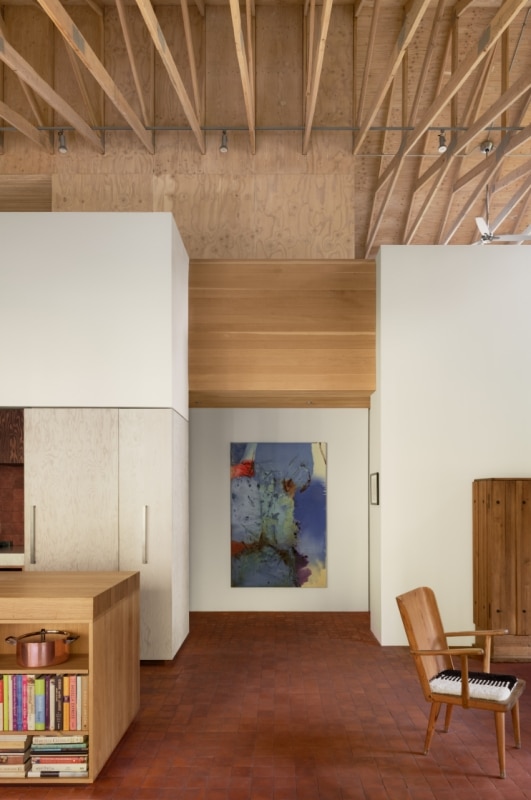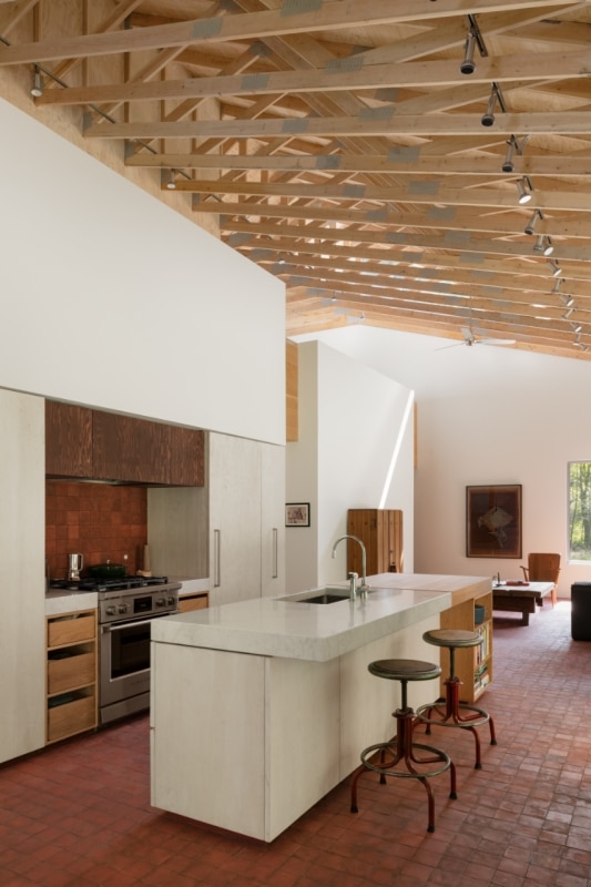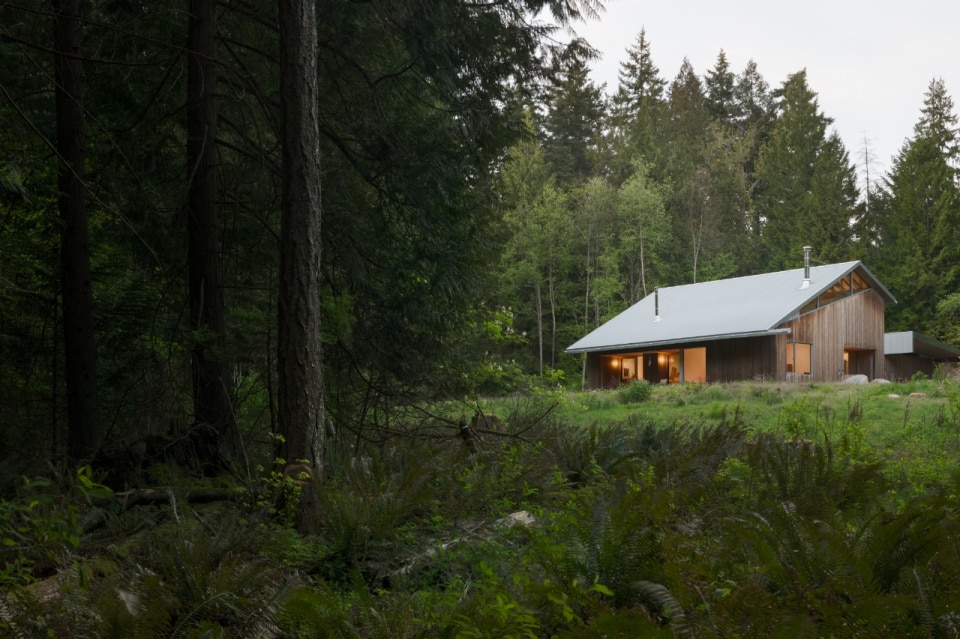 Point Roberts is a U.S. exclave located in Washington State that cannot be reached by land without passing through Canada. Scott and Scott have designed a retreat-like home here, set within a clearing and intended for short stays in an area that has largely become a holiday destination. The project centres on the extensive and thoughtful use of wood. Exposed structural beams form a dense truss system that is visible across both levels. The ground floor is dedicated to the living area, with a mezzanine level above. The exterior surfaces are clad in Alaska yellow cedar, which is designed to weather and evolve over time. Inside, fir and oak are used for furnishings and functions — from the kitchen to the stair core and custom pieces crafted using traditional techniques. Wood interacts with stone, metal, white plaster and terracotta flooring, yet it remains the dominant element, unifying the spaces and creating a strong sense of material continuity.