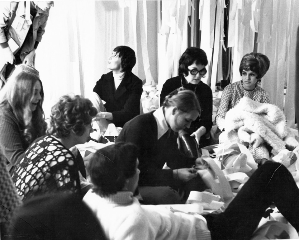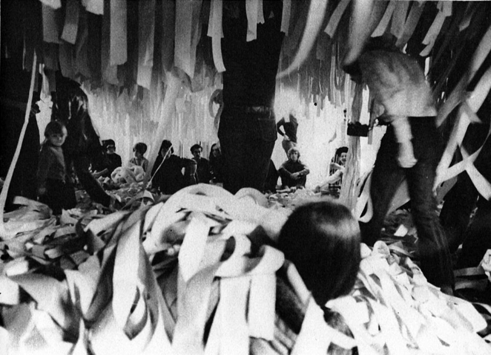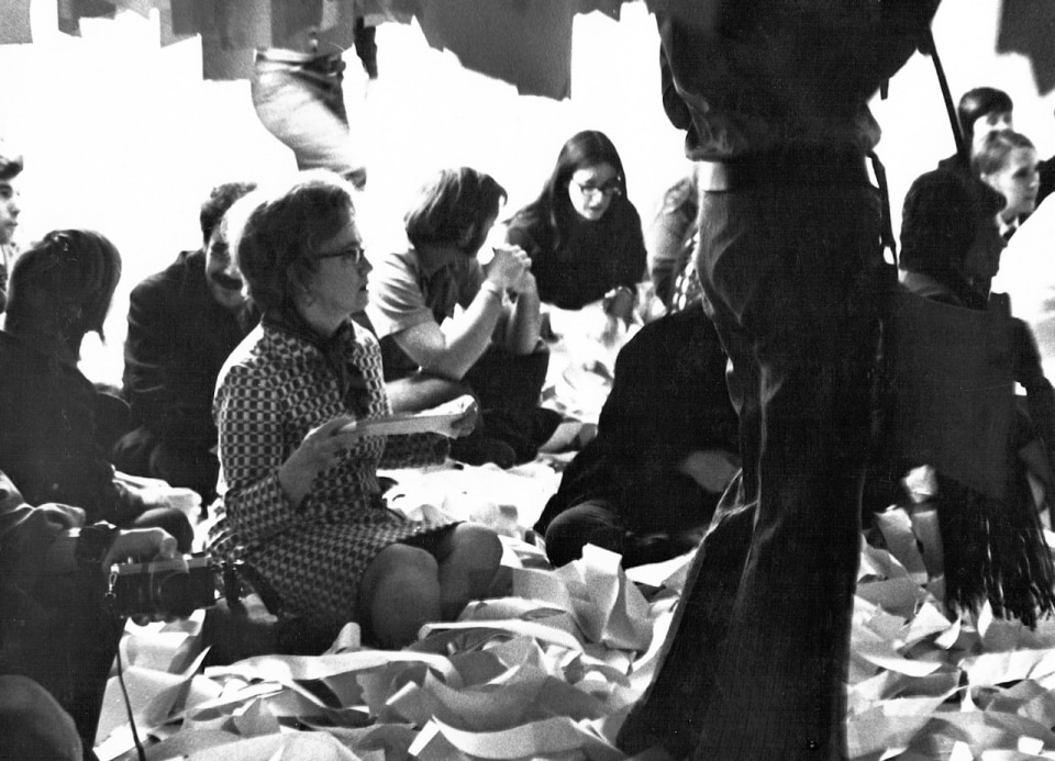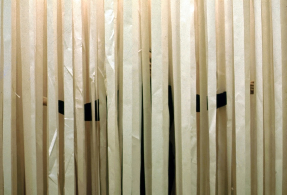 All of Pettena’s spaces are built, and above all, made possible by a fundamental trait: they are do-it-yourself environments, materializations of people’s existence within the containers of their lives – streets, landscapes, architectures. Paper embodies this perfectly. First conceived in Minneapolis in 1971, the project consisted of saturating a space with vertical strips of paper, the very room where Pettena, then a visiting lecturer at the local university, was meant to give a talk. “As people arrived, each was handed a pair of scissors and told: ‘do it yourself’, cut out your own space, do whatever you like. Just don’t try to go straight; be a little sinuous, otherwise it turns into a corridor, visually rather dull”. There were around 400 seats: “They gathered the paper strips they cut, made piles to sit on, and that became the space they had chosen to carve out and organize. It was fun for me too, because I had no idea what would happen, I had never done it before”.