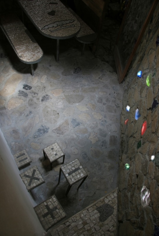 And yet the house on Elba returns here, too. The way it grew—and, above all, what it contains—is a concise narrative of Pettena’s life: a continuous weaving of encounters, contaminations, and—among the often-quarrelsome radicals—reconciliations. Inside, on two sides of the same volume, one finds Sottsass’s fireplace and Alessandro Mendini’s mosaic; then Lapo Binazzi’s (from UFO) coat rack, Andrea Branzi’s girouette, and works by younger artists such as Ugo Marano and Marco Pace.