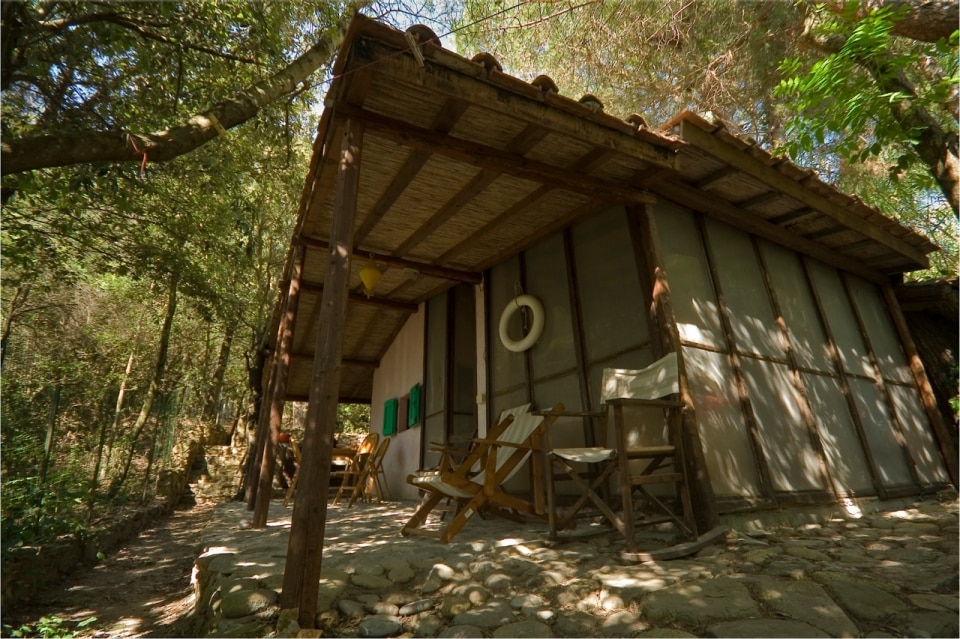 It had been a shelter for tuna nets, abandoned and collapsed, set on a terraced slope facing the sea. “And I did not touch this substantial human intervention.” Instead, he inserted himself into one of those terraces and, by clearing brambles and embedding within Mediterranean scrub, allowed the structure to grow gradually, without adding to or subtracting from the place: stones gathered from the sea or nearby, and a tiny initial living unit, almost like a caravan. “I bought furnishings from factories supplying caravan and camper manufacturers: minimal, foldable equipment.” Parents would sleep in the living area – where the table lowers to become a bed along with two benches – while a mezzanine was created for the daughters.