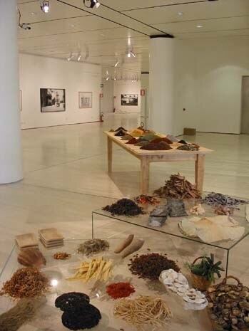 The images are alternated with scores-paintings by Brazilian musician – also architect, photographer and writer – Emanuel Dimas de Melo Pimenta, pupil and friend of Cage, forming the main nucleus of the exhibition, alongside other objects: a cactus, a group of stones and a table covered in the spices that Cage used for cooking with. In the background, music by the younger composer accompanies the visitor.