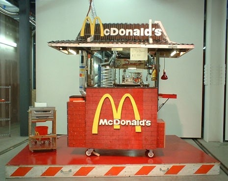 In an attempt to represent the devastating power of mass commercialisation and, together, the resistance and transgression that we can oppose it with, the New York artist – who in 1998 caused no small debate with his “Prada death camp”, a Nazi concentration camp mounted on a Prada hat box – has set up in Berlin a universe dominated by an alternative economy: where unlicenced McDonald’s and chairs called Barcelona rule. An invitation to reconsider the confines – economic and geographic, architectural and ideological – with an unblinkered look at the socio-political structures that they impose.