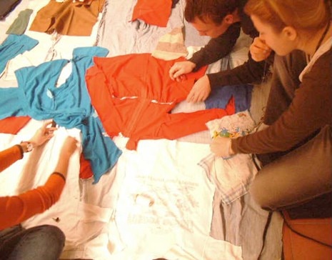 The African artist Meschac Gaba, during his Transformation workshop, created a whole collection of adult clothing, made from children’s clothes which the rich West sends to Africa. The new clothes were produced with the utmost care. At the end of his work Meschac Gaba organised a parade of models created during the workshop.