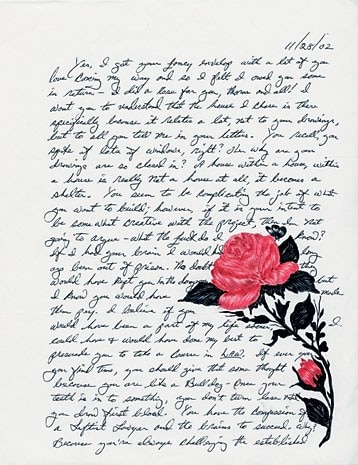 In the exhibit Sumell juxtaposes a wood life-sized model of Herman’s cell (built from the drawing printed in the following pages) with Herman’s dream house, which Jackie has reconstructed in a 50:1 balsa wood scale model and a fly-through CAD model projected in video and accompanied by an audio tour read by Robert King. The exhibit’s contents and excerpts from their correspondence have been published in the 130-page book The House that Herman Built, by merz & solitude and designed by Katya Bonnenfant. Currently Herman and Jackie are hoping to find a donated land and a pro bono architectural team to build the house. This project has transcended the boundaries of art and activism. It illustrates resistance, friendship and the thresholds of humanity. Ultimately they wish to build the house and to bring in to fruition a dream from within a nightmare. F.G.