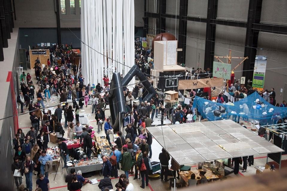 You have mentioned the fact that the choice of artist was linked to the "use" of the space. How was this installation inserted in the space of the Turbine Hall? Mariana decided to create a site-specific installation, constructing elementary folding structures inspired by Lina Bo Bardi's work in the Sao Paolo museum.
