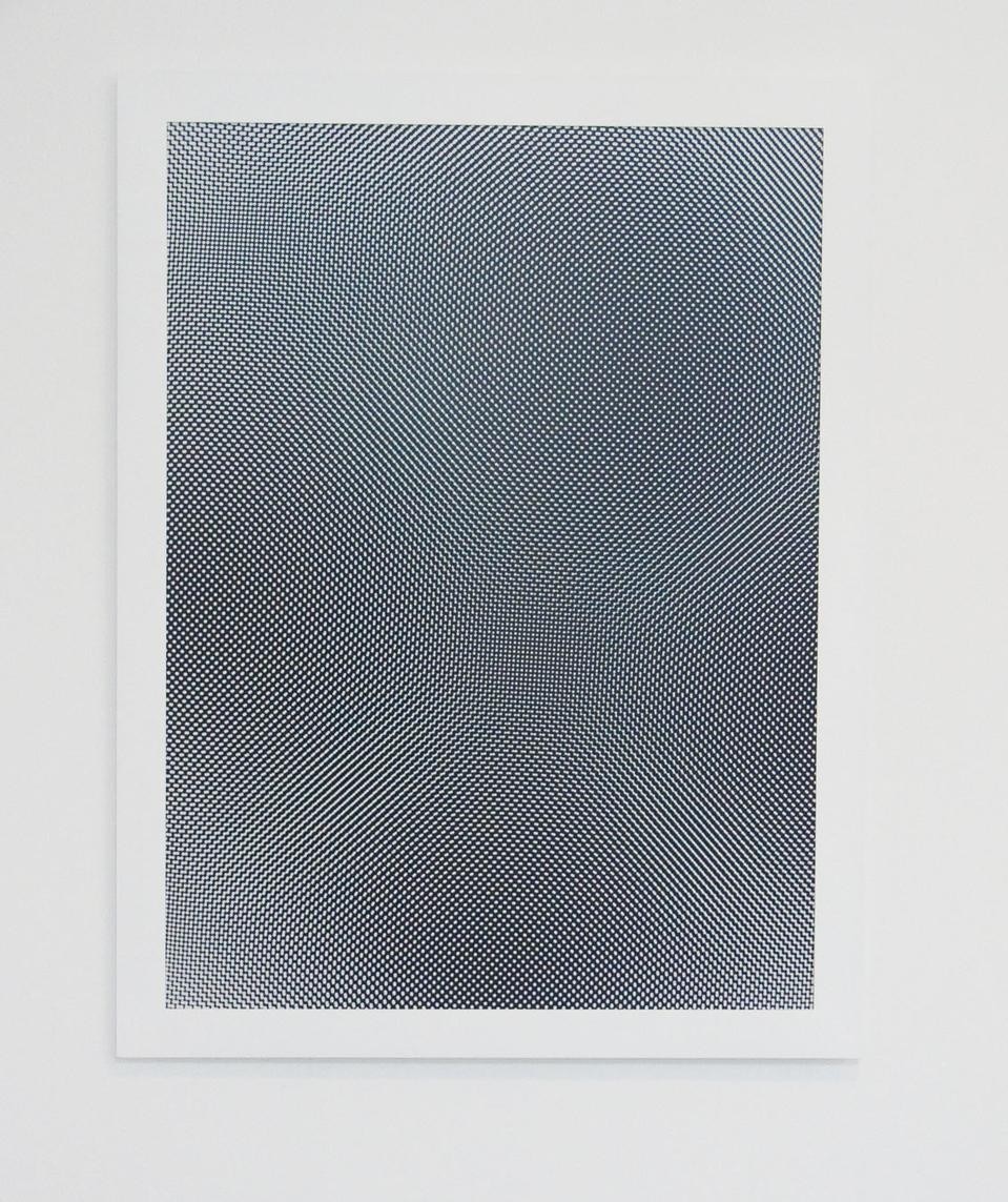 This “faking” of depth via a confusion of scale and surface is found elsewhere. The trompe l’oeil creases of one of Tauba Auberbach’s “wrapping paper” paintings complement Seth Price’s bow-tied gift printed on iridescent film smoothed over acrylic. Liz Deschenes’ homage to Bridget Riley is a C-print remake of Op-art’s precisely dizzying swirls. Details spring into disorienting 3-D as the viewer comes face to face with these supremely flat riddles of vision. Simple yet mesmerizing in effect, the best works in “Picture Industry” are like sophisticated Magic Eye puzzles that challenge us to stare at them long enough to see something—but what exactly? Leaving the gallery the world outside appears, contra Adorno, re-filtered into something startlingly concrete: a result of the hard looking demanded by the mirages inside.