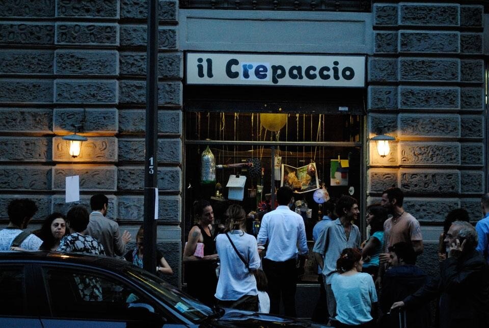 A new response to this "structural deficiency" is Il Crepaccio, a recent initiative by the Il Carpaccio restaurant in the Porta Venezia neighbourhood. Taking the demand for a "shop-window for art" literally, ironically and with a pinch of enterprise and pragmatism, the restaurant offers one of its windows to up-and-coming young artists — and in the future, it will also be open to designers, writers and other creatives. Alternating every fortnight, the window — above which a few letters and some glue altered the sign of Il Carpaccio to read Il Crepaccio — allows complete freedom: limited to this space, artists are free to decide what to display and how. Patrons of the art world can, after satisfying their curiosity, slip from the street into Il Carpaccio and benefit from the specially created "artists'" menu for €25.