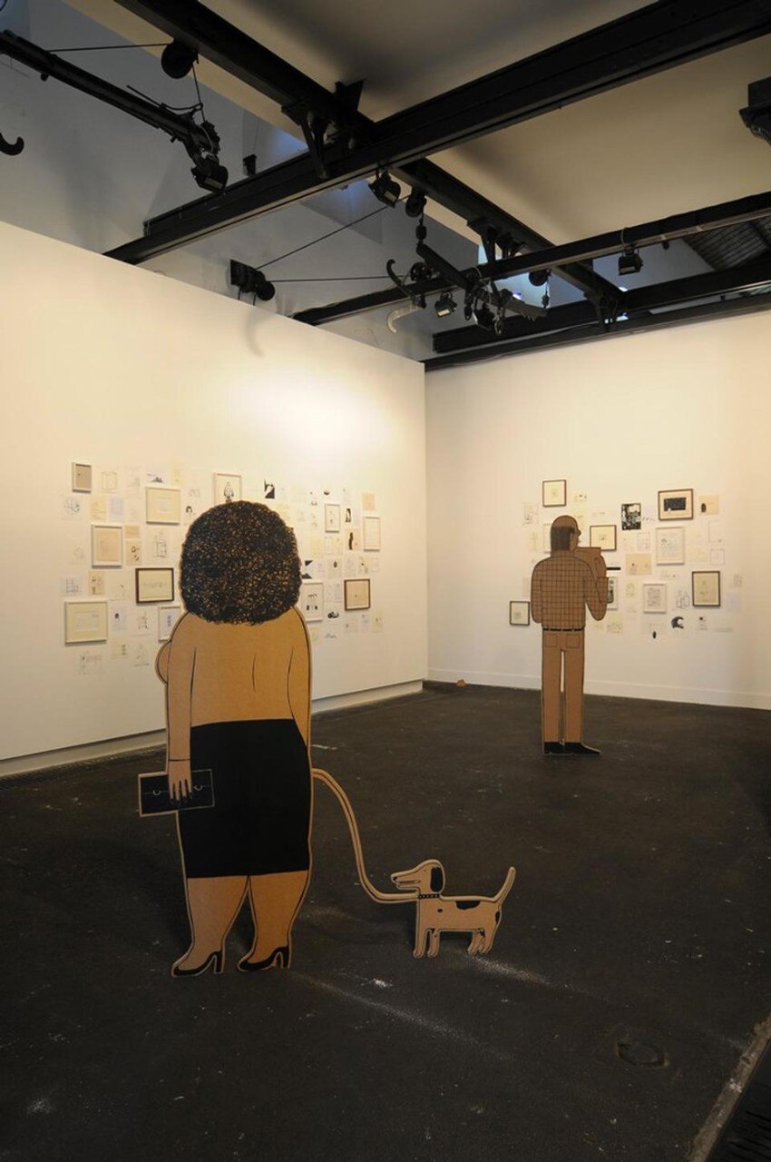 One of the drawings in Marco Raparelli's (born 1975) deliberately imprecise and Spartan style was selected to promote the exhibition. His work I senza nome gathers dreamlike situations and a strata of characters who occupy the museum space in a picture gallery, life-size figures that mingle with the visitors.