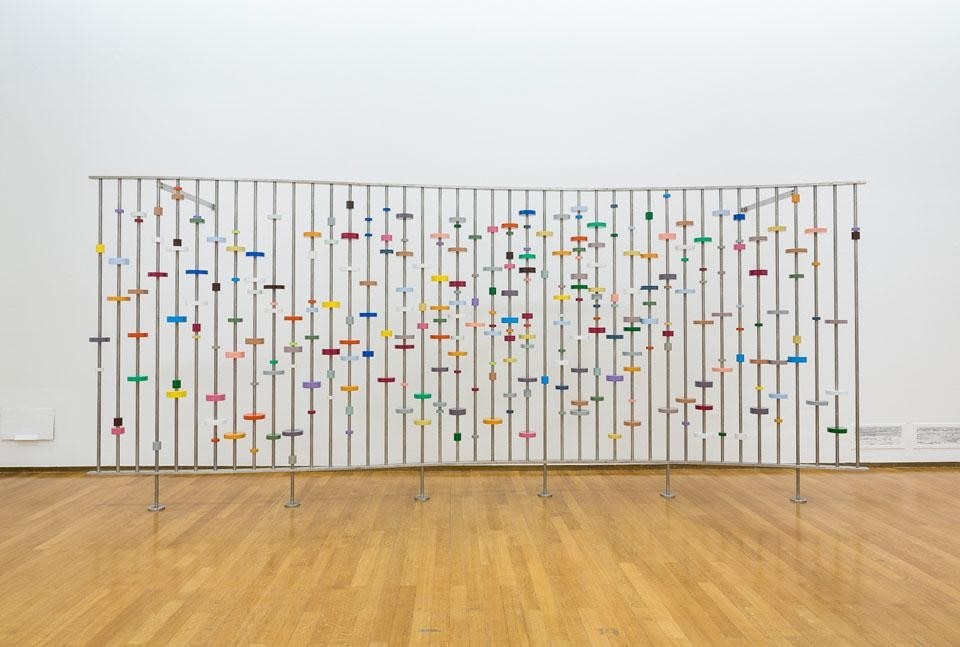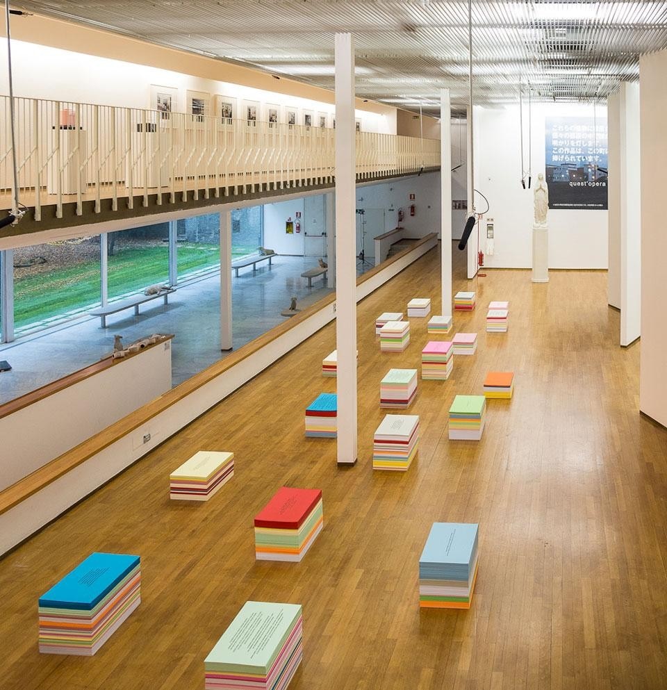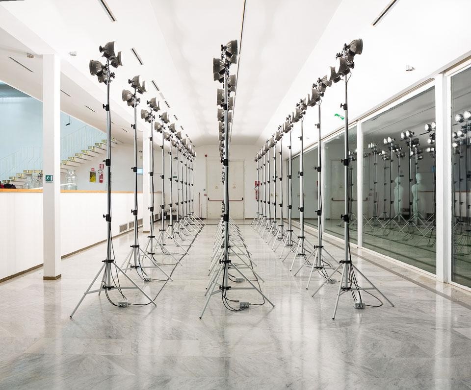 Like a single large work, articulated in a series of steps corresponding to past works, dating back to 1974 and condensed in works conceived for PAC, the exhibition sets up a sensible dialogue with the architecture of Ignazio Gardella and makes the visitor immediately aware of his own role in producing meaning, beginning with an installation that consists of microphones distributed around the space that are active during the full exhibition run.