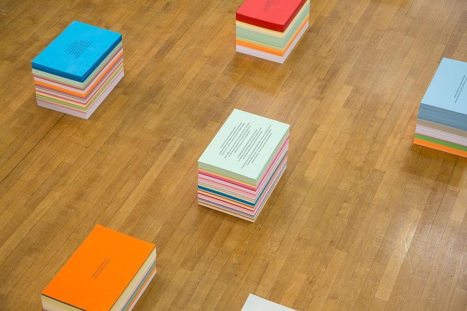 This flat writing on the floor speaks continually of individual experiences. It speaks to the person who reads it. It can be anywhere, in some way it is drawn into everyone's world. It is a condenser of existences, a kind of metronome. The more one realises, the more it produces meaning.
